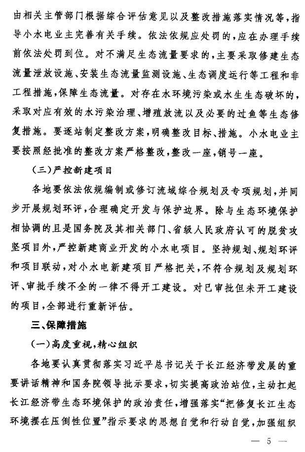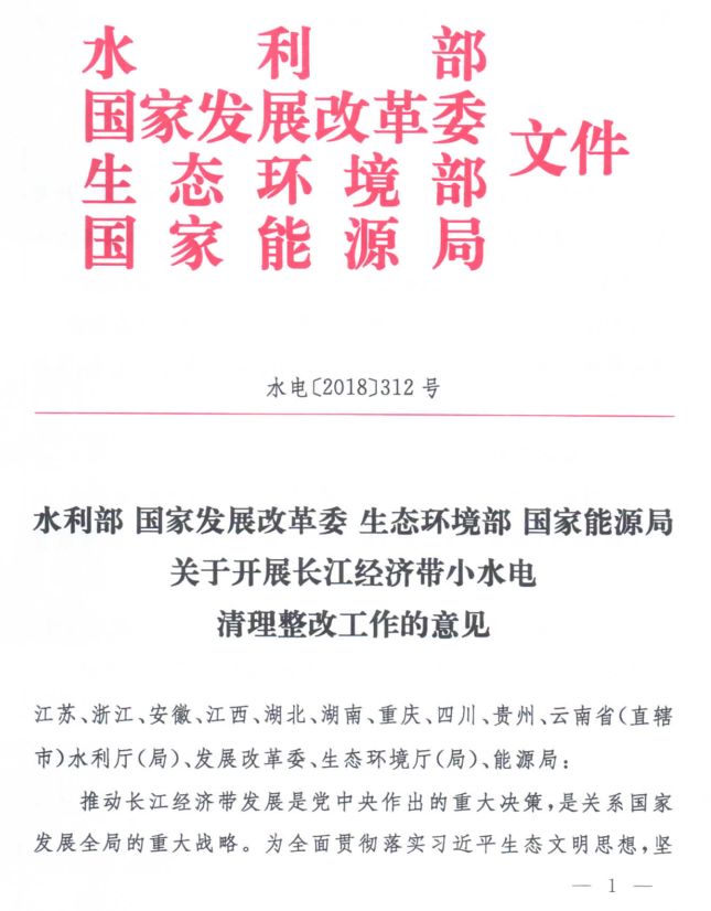 四部委:關(guān)于開(kāi)展長(zhǎng)江經(jīng)濟(jì)帶小水電清理整改工作的意見(jiàn)