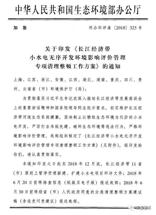 國家生態(tài)環(huán)境部印發(fā)《長江經濟帶小水電無序開發(fā)環(huán)境影響評價管理專項清理整頓工作方案》的通知,通知顯示,切實維護長江經濟帶河流生態(tài)系統(tǒng)...