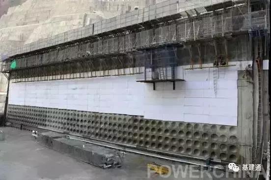 大壩保溫工作主要是針對(duì)倉(cāng)號(hào)保溫及壩段間橫縫保溫。由于各施工作業(yè)面澆筑尺寸大、施工期暴露面多、溫控要求高、標(biāo)準(zhǔn)嚴(yán)、且對(duì)質(zhì)量和外觀有很高要求的特點(diǎn)。水電四局嚴(yán)格按照標(biāo)準(zhǔn)、規(guī)范及業(yè)主、設(shè)計(jì)方要求迅速行動(dòng)起來,制定冬季施工方案,對(duì)相關(guān)人員和作業(yè)班組進(jìn)行技術(shù)交底,嚴(yán)格執(zhí)行關(guān)鍵工序卡控制度,合理組織施工工序,落實(shí)各項(xiàng)保溫措施,保證全天候的作業(yè)條件。積極做好預(yù)拌混凝土、混凝土垂直、水平運(yùn)輸過程中的溫控工作,保證混凝土入倉(cāng)溫度,將季節(jié)因素對(duì)施工的影響降至最低。澆筑完成后用采用5厘米厚聚苯乙烯擠塑保溫板加固,聚乙烯卷材覆蓋等防寒保溫,質(zhì)檢人員多時(shí)段巡查,以保證混凝土不受凍、平面無裂痕、不留死角,橫縫面貼緊混凝土。