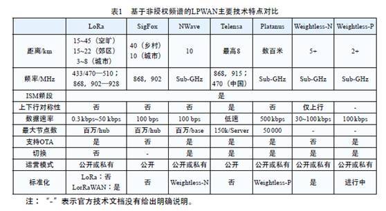 非授權LPWAN技術對比