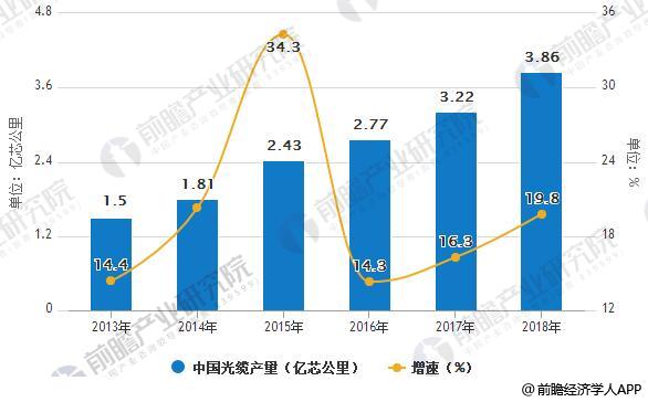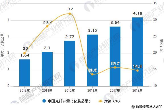 2013-2018年中國光纖光纜產(chǎn)量統(tǒng)計(jì)及增長情況預(yù)測
