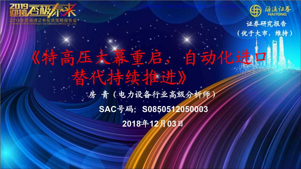海通證券深度報告:特高壓大幕重啟,自動化進口替代持續(xù)推進