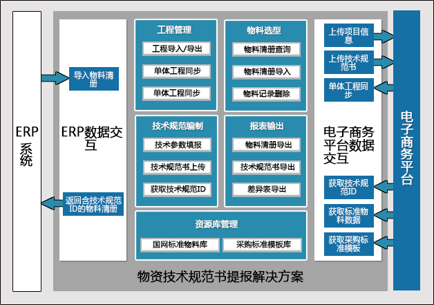 系統(tǒng)是以協(xié)助工程設(shè)計人員脫機完成物料選型和技術(shù)規(guī)范書編制為目的,充分應(yīng)用國網(wǎng)標(biāo)準(zhǔn)物料及采購模板,為電子商務(wù)平臺、ERP系統(tǒng)和概預(yù)算編制軟件提供物料清冊、技術(shù)規(guī)范書、技術(shù)規(guī)范ID等基礎(chǔ)物資數(shù)據(jù)。
