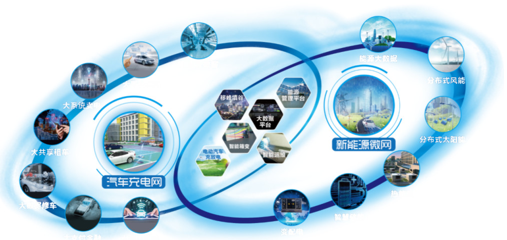 基于現(xiàn)有的汽車生態(tài)充電網(wǎng)以及未來要做的能源管理,構(gòu)建了“雙網(wǎng)融合”的生態(tài)價(jià)值體系,把新能源微網(wǎng)、汽車充電網(wǎng)中的變配電、智慧儲(chǔ)能、太陽(yáng)能、風(fēng)能和能源大數(shù)據(jù)等體系融合在一起。“雙網(wǎng)融合”是核心,包括智能設(shè)備的制造、智能運(yùn)維、以及智慧能源管理等,這些都是用大數(shù)據(jù)來實(shí)現(xiàn)的。